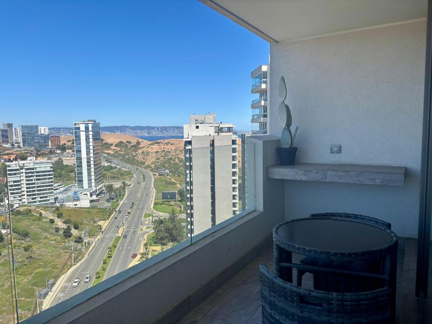 Cómodo y funcional depto Estudio in Concón offers a one-bedroom apartment with a terrace and free WiFi. The property includes a balcony, kitchen, and seating area, ensuring a pleasant stay.